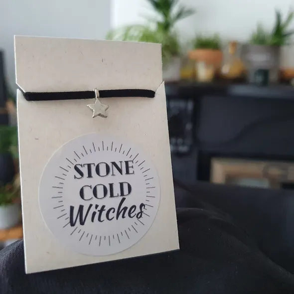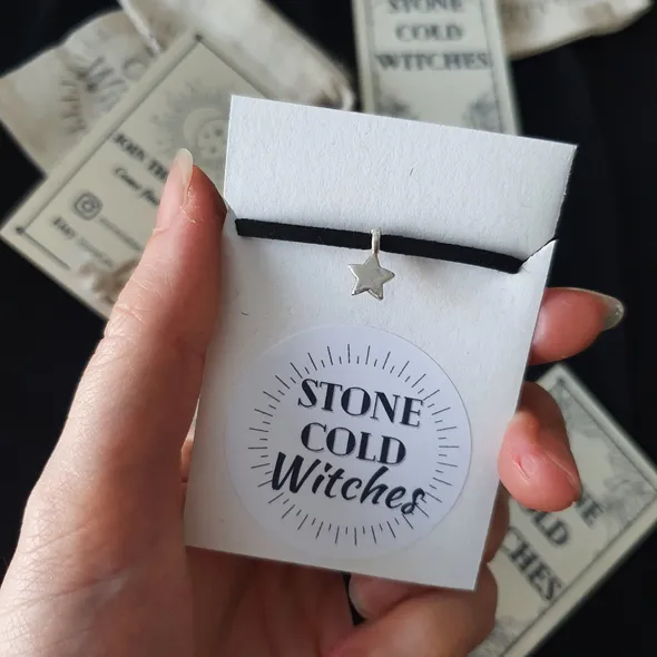 *~Hey Witches!~*I've crafted this dainty star choker necklace for those of you who feel a strong pull to the stars and the sky, who look upwards for inspiration. May this act as a talisman to strengthen that connection and remind you that the brightest star in your life, is yourself. This piece is handmade using faux suede with a lobster clasp, the mini star pendant is a rustic style silver plated piece. The necklace is approx 34cm, with an extra 6.5cm of extender chain.If you have any questions, just drop a message!Lots of loveStone Cold Witches x
